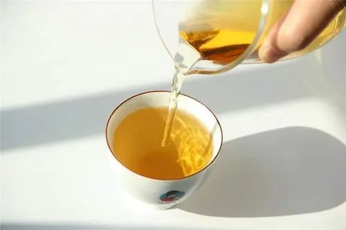 将水温95~100度的水注入杯中,水温以高温为佳,高温方可使其香气、滋味物质得到充分释放,而过低的水温,则无法释放茶类物质。