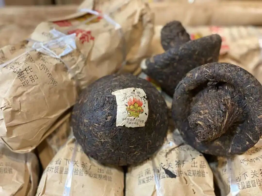 90年代下关紧茶,内飞双排字,宝焰牌蘑菇沱,菇型紧实完整,自然陈化仓储佳,已出药香,同时带下关特有烟香,现已非常适合品饮。