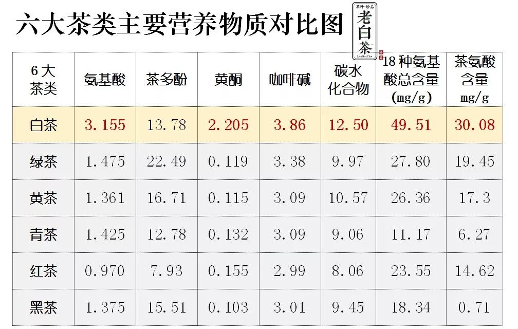 与其他茶类一样,白毫银针含有的茶多酚、维生素、矿物质等成分,但与常茶不同的是其活性酶含量、黄酮含量比其他茶叶高出足足一倍多。