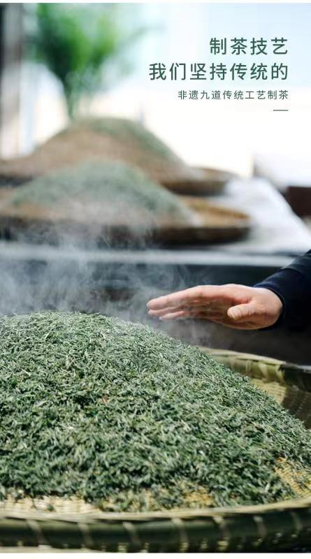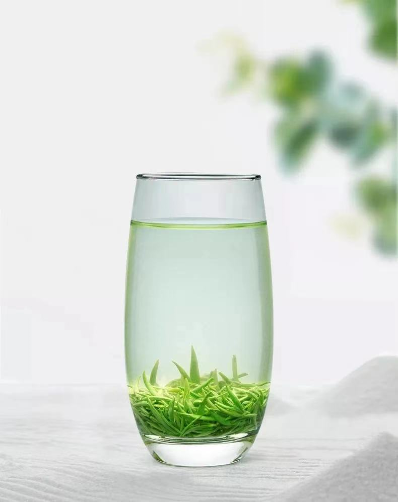 将细、圆、光、直的叶片捏几片,丢入水中,看茶叶在水中上下翻飞,蜷缩的叶子渐渐舒展,清澈的水变成透亮的黄绿色,杯口飘出几缕醇浓的茶香。