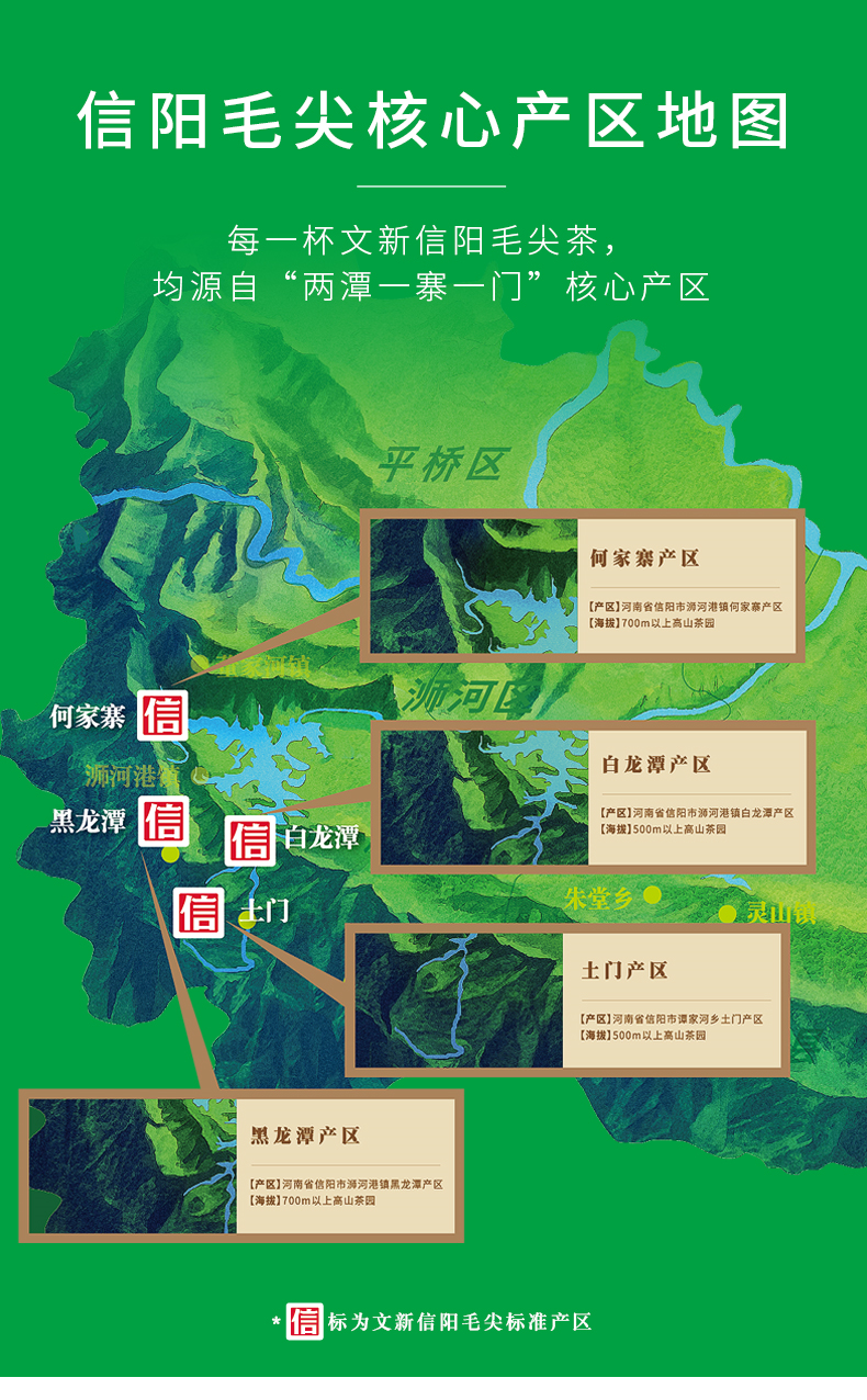 文新茶园,32度北纬线“中国江北茶区”段,是信阳毛尖的原始生长带,文新信阳毛尖,就来自信阳毛尖发源地“两潭一寨一门”的核心产区。