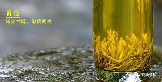 四、泡: 这也叫开汤。开汤后,先嗅杯中香气,再看汤色、品尝滋味。上等蒙顶黄芽茶叶“黄叶黄汤”其汤色黄亮透碧,香甜鲜嫩,滋味鲜醇回甘