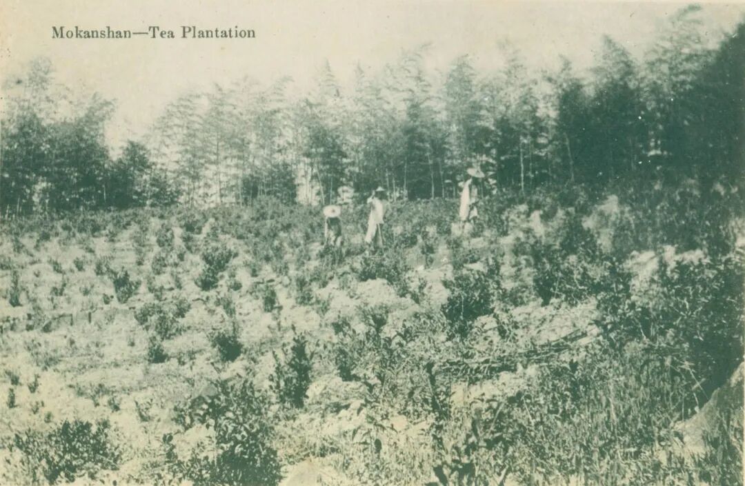 高峰山也罢,天泉山也罢,黄回山也罢,甚或横岭也罢,若给莫干山茶主要产地画一个方位图,中心即塔山。清道光《武康县志》载:“茶产塔山者尤佳,寺僧种植其上,茶吸云雾,其芳烈十倍恒等。”周庆云之子周延礽续补《莫干山志》“茶之属”:“塔山西首之六宿台,近有种茶树者。”六宿台,俗称大雷山,亦莫干山支峰,顶有望月亭,地颇平衍,宜种莳。清末民初的莫干山明信片中,就有一枚“MoKanshan——Tea Plantation”,画面上几位茶农正在茶园劳作。