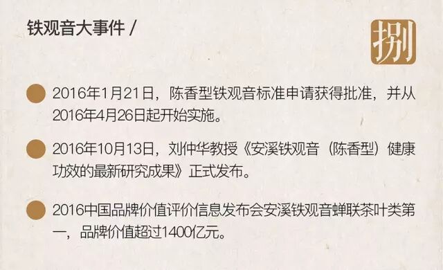 ①2016年1月21日,陈香型铁观音标准申请获得批准,并从2016年4月26日起开始实施。