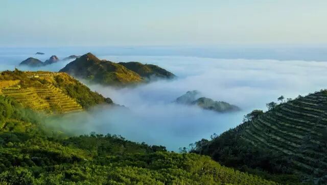 雾多露重,常年降水量大,一般年份降水天数140天,年均降水量2000毫米以上,终年多云雾,年均雾日达20天,湿度大,日照呈短日照数和短光波的特点,对茶树的生长活动非常有利。