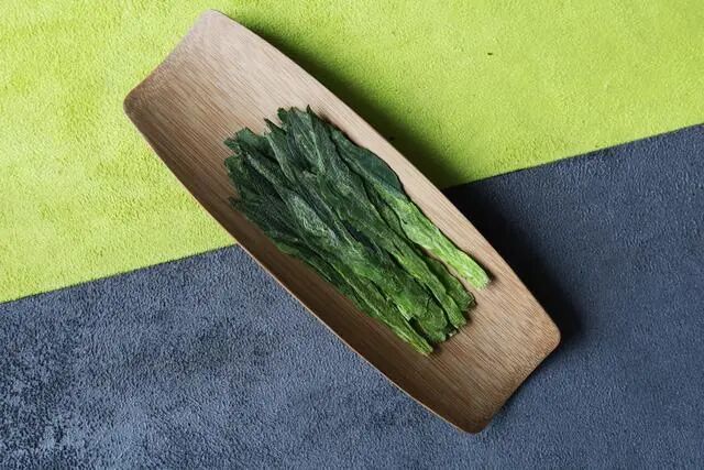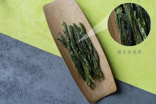 可以看到干茶叶片上,布满了格子状的纹理。这正是特级太平猴魁纯手工捏尖制作的象征。
