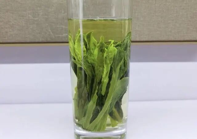 布尖茶外观扁平,个别芽叶薄如纸,极像知了的翅膀,颜色呈现嫩绿稍黄。