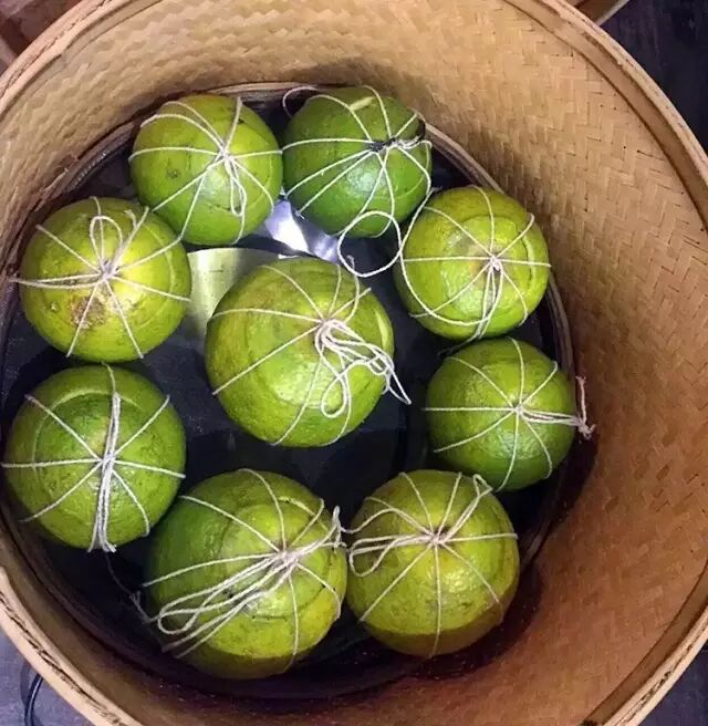 可能是因为家传比较严格,做这款茶的豆子老师对产品品质要求非常高。选用了广东新会的大红柑和云南勐海的5年陈宫廷普洱来制作柑普,制作完成后自然存放了一年。