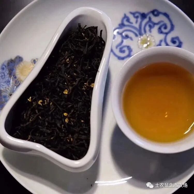 桂花九曲红梅,以茶为骨,以骨凝香,手工古法窨制。新鲜的桂花和茶叶相互拌和,再放入生石灰中,足足等待24小时。