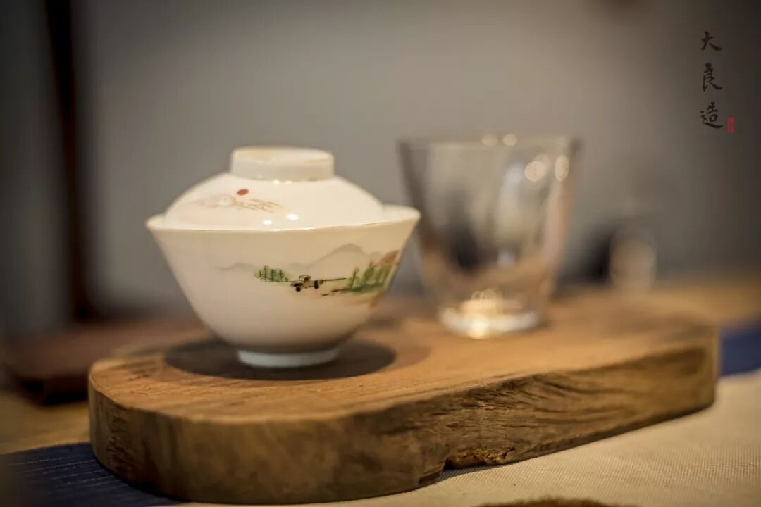 备好老茶盘和老茶碗,先欣赏干茶,闻干茶的香气。再用100度开水冲泡,快速注水,快速盖上盖碗。