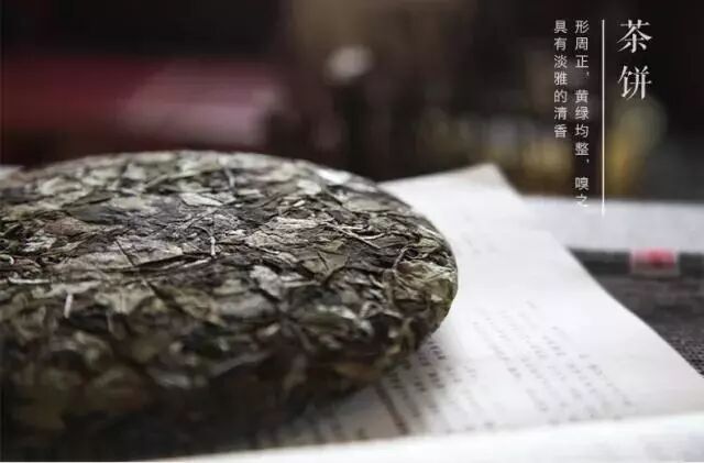 干茶饼形饼形周正,无起层脱面,饼缘完整,松紧适度,白毫较显,黄褐较匀。