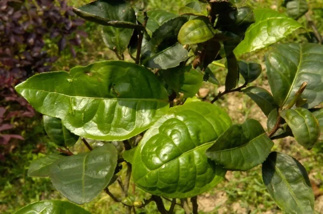 属灌木型品种中叶片最大,叶大如掌,细嫩油亮。成品茶条索紧卷圆结、肥壮重实,粒大为乌龙茶之首,有佛手之肥壮。