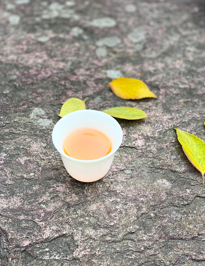 有一次,我泡给办公室的同事喝。她在我身后的工位上,伸长脖子等着。我倒来倒去,折腾出一小盅。用两只鸡蛋大小的白瓷杯,我们一起喝。她趁热喝了一小口,瞬间花容失色,说:“这什么茶?这么香!我喜欢。”接着,拿起手机,对准茶汤,不停得拍,喝嗨了。