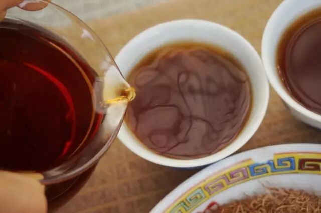 冲泡时,受黄曲霉菌霉变的茶汤色灰暗或棕黑,味道发涩,有略微的霉变气味。数泡后,汤色很快变淡且依然混浊。