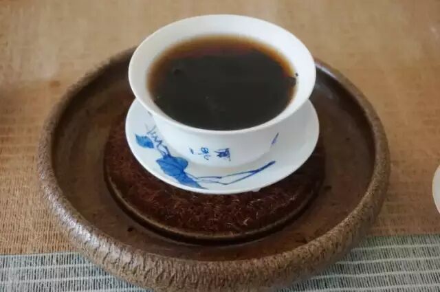 有金花的六堡茶,茶叶一般凝成块,冲泡时不易散开。