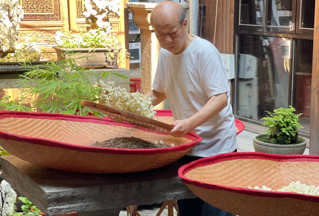 整个制作过程,要历经制坯、养花、筛花、窨花、通花、起花等多道工序,方可完成。
