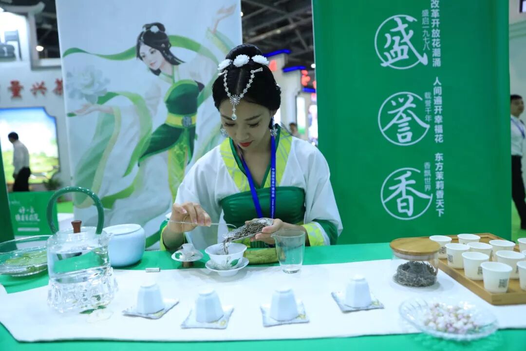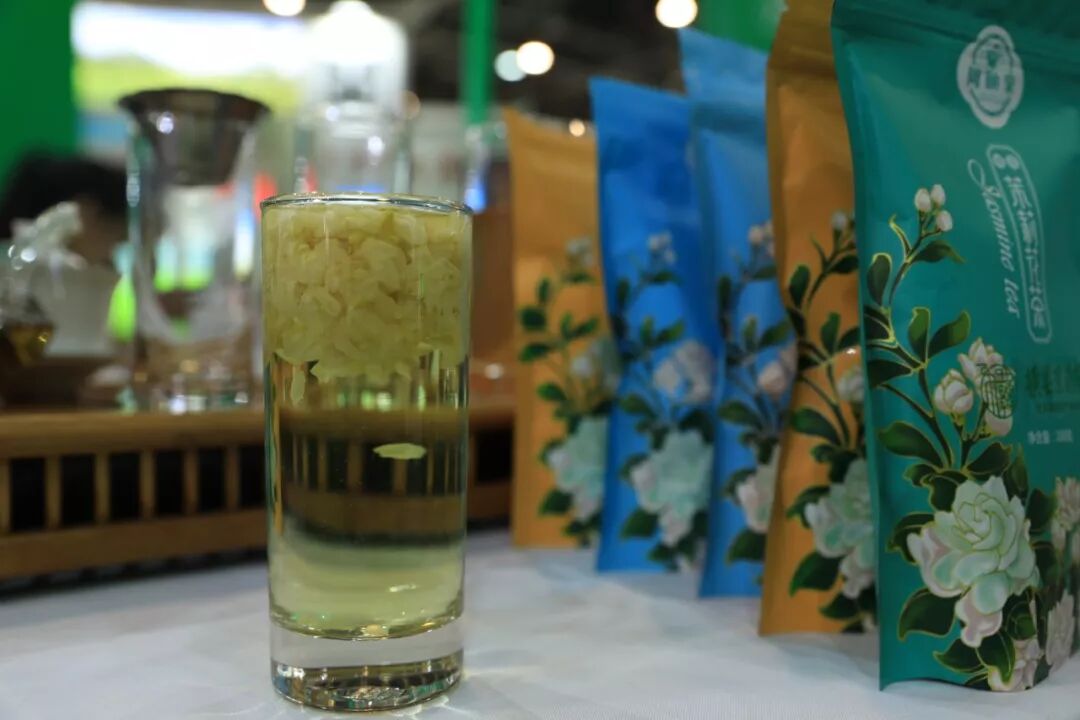 逛到茶博会的3C展厅,小编被广西横县茉莉花茶茶香吸引住了。