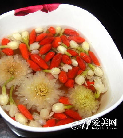 【菊花枸杞茶】材料:菊花10朵、枸杞30克