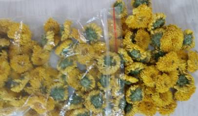 市场上有一种胎菊,是杭白菊未开放的花蕾。其呈球形、形态整齐,花瓣不散开,色泽金黄,气味浓郁。用来泡茶,茶色金黄,香气纯正、浓烈。这是菊花中的上品。