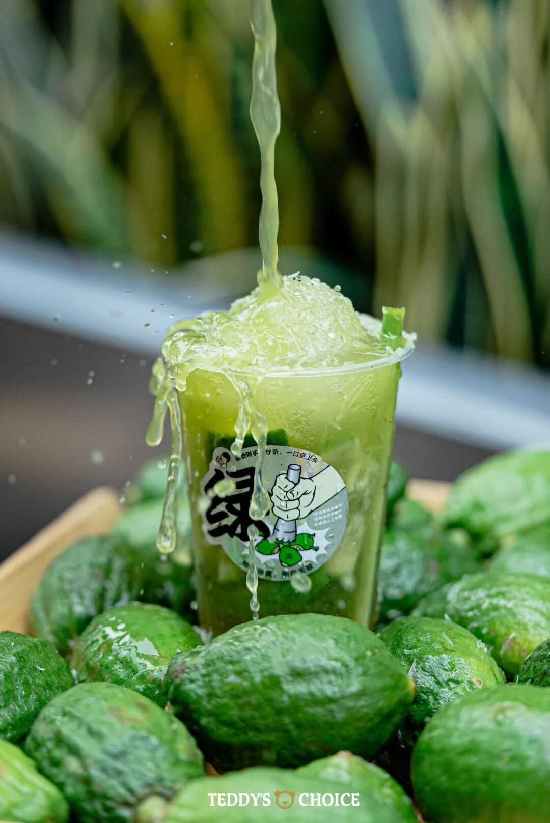 除此以外,喜茶全新登场的绿爆柠是在爆柠茶的基础上汲取东南亚的灵感,特别加入薄荷风味,以及新鲜香水柠檬、天然香茅提香,顶上还放了超冰爽的暴风冰球,层次爆棚,一口上头~