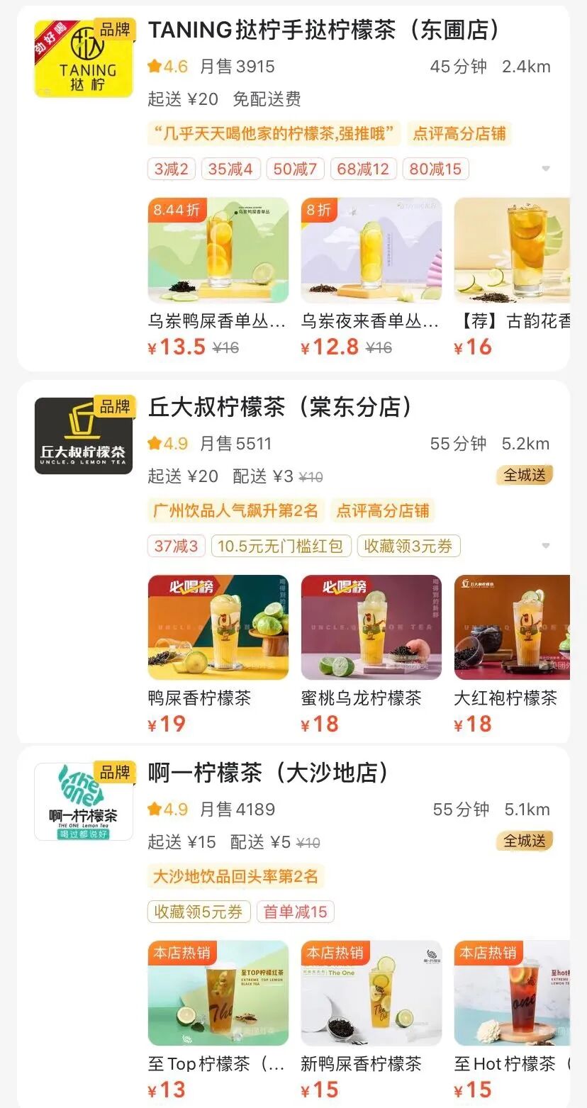 在走访广深两地的茶饮市场时,红餐网(ID:hongcan18)记者发现除了柠檬茶门店随处可见外,还有不少饮品店也将“人气爆款产品”换成了柠檬茶。