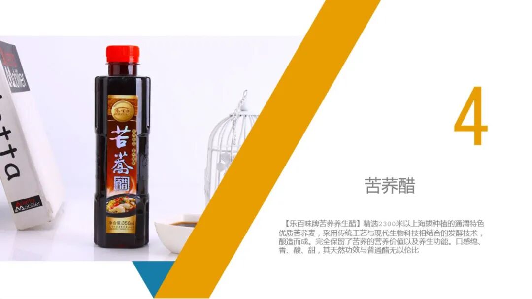 (四)苦荞醋:苦荞养生醋精选2300米以上海拔种植的通渭特色优质苦荞麦,采用传统工艺与现代生物科技相结合的发酵技术,酿造而成。完全保留了苦荞的营养价值以及养生功能。口感绵、香、酸、甜,其天然功效与普通醋无以伦比。