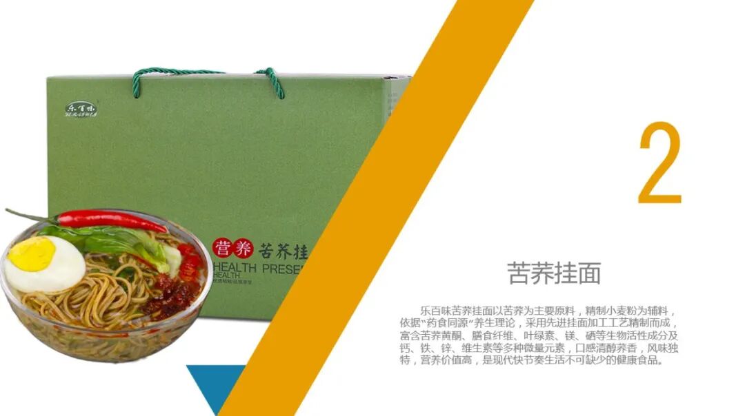 (二)苦荞挂面特点苦荞挂面以苦荞为主要原料,精制小麦粉为辅料,依据“药食同源”养生理论,采用先进挂面加工工艺精制而成,富含苦荞黄酮、膳食纤维、叶绿素、镁、硒等生物活性成分及钙、铁、锌、维生素等多种微量元素,口感清醇荞香,风味独特,营养价值高,是现代快节奏生活不可缺少的健康食品。