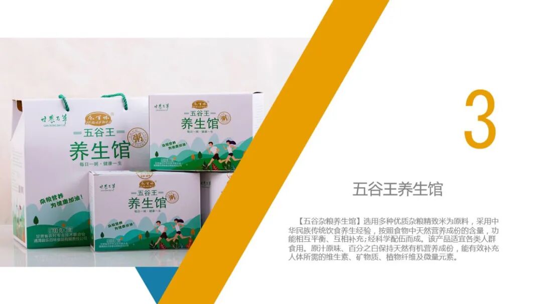 (三)五谷王养生馆特点五谷王养生馆选用多种优质杂粮精致米为原料,采用中华民族传统饮食养生经验,按照食物中天然营养成份的含量,功能相互平衡、互相补充;经科学配伍而成。该产品适宜各类人群食用。原汁原味、百分之百保持天然有机营养成份,能有效补充人体所需的维生素、矿物质、植物纤维及微量元素。