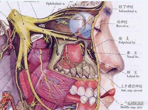人的大脑共有12对颅神经,三叉神经是第五对颅神经,也是面部最粗大的神经。实际上,三叉神经属于混合神经,即既有运动神经,也有感觉神经。感觉神经主要是支配面部的一些感觉,包括面部、口腔、鼻腔等等这些感觉,它也有三个分支,分别是眼支(第一支)、上颌支(第二支)和下颌支(第三支)汇合而成,这也是三叉神经的名字由来。那么还有一支是运动支,主要是支配咀嚼肌的运动。