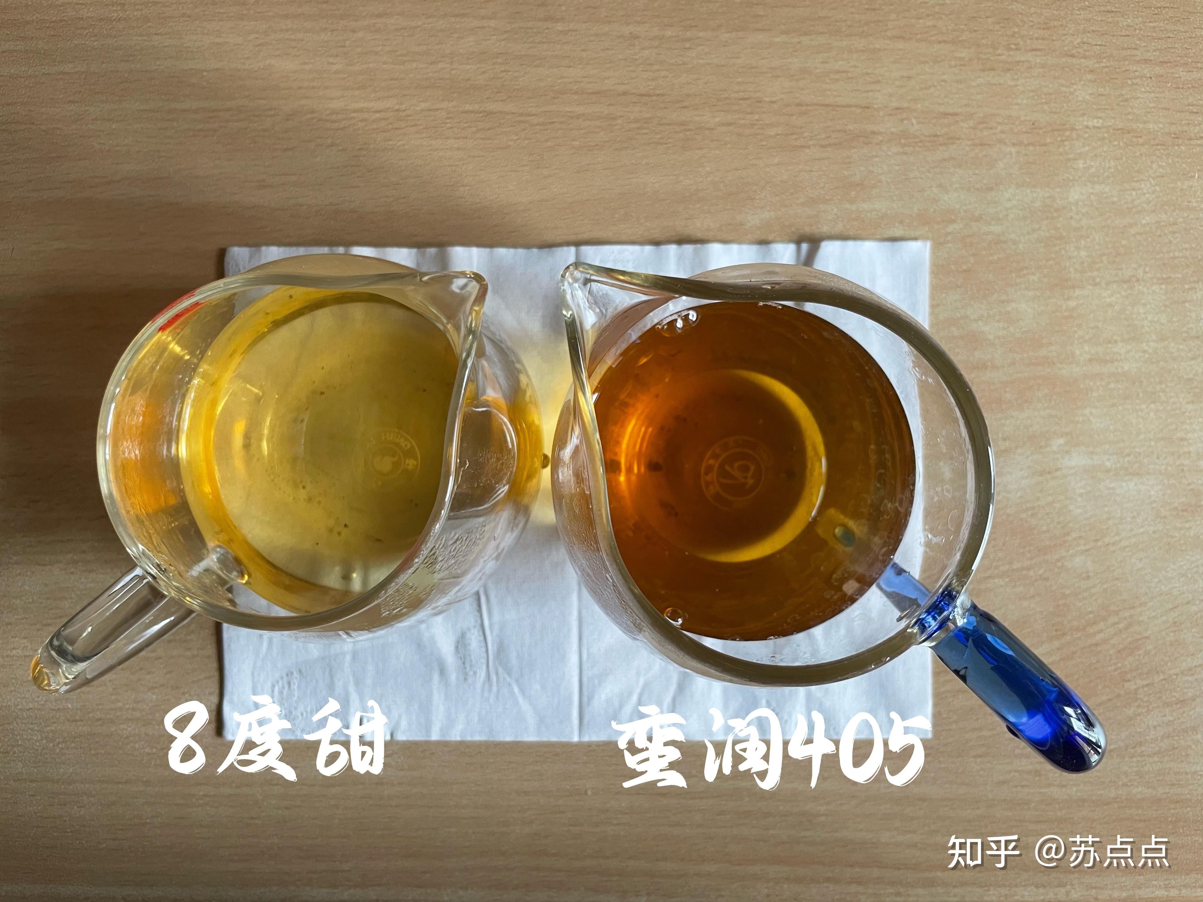 这里有四款普洱生茶的测评结果,感兴趣的不妨看一下。 普洱茶为云南特色茶叶,采用云南大叶种群体原料采制而成。通过不同的加工工艺可以分别生产出普洱生茶和普洱熟茶。两者的原料都是云南晒青毛茶,普洱生茶通过进一步精制,蒸压成圆饼状;熟茶则通过后发酵工艺转化晒青毛茶的品质,再将其蒸压成饼。下面是普洱茶的国家标准: 普洱生茶保留了鲜叶中大量的茶多酚,其茶汤浓度较高,滋味醇厚,回甘明显,香气高扬而持久,耐冲泡,是老茶客的心头好。普洱熟茶由于通过后发酵让大量的茶多酚发生了氧化,滋味转变为醇和,没有刺激性,入口即甜,陈香纯正,也耐冲泡,是不少年长的茶叶爱好者的不二之选。 今天有点兴致重新将两个不同产区和年份的普洱生茶茶样进行了审评,感觉还是挺有特色的。 下面的两款生茶均为吉普号公司送来的检测茶样,也是2022年主推的两款茶。一款为【大雪山 | 215】,另一款为【蛮润 | 405】。下面是这两款茶的产品信息: 大雪山 215采摘年份:2022 产品标准:GB/T22111 茶类:普洱生茶(绿茶类) 原料等级:含芽率介于20%~30% 原料产地:临沧勐库 重量:250g 门店内所属级别:基础品饮款蛮润 405采摘年份:2021 产品标准:GB/T22111 茶类:普洱生茶(绿茶类) 原料等级:含芽率介于20%~30% 区 重量:357g 从原料来说,两款茶的原料嫩度不算高,毕竟这两款属于入门的口粮茶。不过普洱茶的含芽率大多数都不是很高的,这个可以忽略,主要看好不好喝。 下面是采用国标中的方法模拟审评。 一顿操作,先干评茶叶的外形,然后湿评茶汤颜色、香气、滋味和叶底。 在外形上,两者都是圆饼状,而且比较重实,边缘平整。撬开的散茶,条索紧实,带有茶毫,总体上两者的外观都比较美。蛮润这一款因为是2021年的生茶,多酚氧化较多,在色泽上比大雪山那款偏黄。 在香气上,两者都是高且持久,大雪山这款以清香为主,夹带花香,闻起来更爽灵。蛮润这款有一定的陈化,以花香和梅子香为主,但比较沉稳。 在汤色上也不大,两者差异,后者颜色稍深一点。 但在滋味上,两者区别较大。大雪山这款的茶汤浓度为中等偏上,带有一定的厚度。而且入口就能感受到甘甜,没有苦涩味,是我比较喜欢的。蛮润这款茶虽然是上一年的原料,但入口有刺激感,回甘明显,茶汤浓度适中。可见也许是原料的产地不一样所致的。 在叶底上,两者都不太好看,比较多断碎和梗茎。这也证明了两款茶的原料较粗壮,不过这是入门款和进阶款的茶叶,不能奢求太多,而且普洱生茶的品质主要以滋味和香气为主要。除此之外,大雪山这款稍微带有花杂,即总体上叶底的颜色不均匀,带有红褐色叶片。蛮润这款的嫩度会比大雪山会好一些,因为摸上去的触感更加柔软。 综上,在与产品的信息描述匹配程度上,大雪山这款大概为70%,在花香、鲜味上都有一些欠缺,不过个人更加喜欢这款茶的口感,滋味甜醇。蛮润这款约为85%,在高香和滋味的丰富度这些方面比较出色。本人更加喜欢大雪山这款的原因是口感上没有蛮润这款具有明显的刺激性,虽然大雪山茶回甘没有它强,但是入口就是甜味,醇但不苦涩,比较适合刚入门的新手尝试,也许这也是为什么要把它定位为入门款的原因吧。其次是蛮润这款滋味带一定的刺激性,回甘也明显,比较适合追求回甘的茶友,或者具有喝普洱茶习惯的人。 两者各有千秋,但是从审评角度来说,蛮润这一款的总体品质的确要比大雪山这款高一些。但本人其实更喜欢大雪山这款茶的口感,所谓各花入各眼,这就是茶叶品质和消费者喜好选择的差异之处吧。 下面是这两款茶的品质审评结果: 圆饼重实,无翘边。散茶条索紧实,色泽褐绿,有光泽,显毫。 香气高爽持久,清香略带花香 汤色橙黄明亮 滋味醇厚、甜 圆饼重实,无翘边。散茶条索紧实,色泽褐绿带黄,显毫。 香气高纯持久,花香带梅子香 汤色深橙黄明亮 滋味醇,有刺激性,回甘 有幸第一次拥有属于冰岛茶区的普洱生茶。冰岛生普常以“冰糖甜”见长,其意思是滋味清甜爽口。今天来测试一下到底是不是真的如此呢? 左边这款也是蛮润 405,做成了龙珠状。右边这款是宫明的冰岛普洱生茶,听说有冰糖甜。两款都是送样测评样品。下面是这两款产品的细节图,个人比较喜欢硬纸盒装的蛮润405,宫明这款保证就比较现代化。 下面是这两款茶的产品信息: 8°甜产品标准:GB/T22111 茶类:普洱生茶(绿茶类) 原料等级:一芽二叶至三叶 原料产地:临沧茶区 重量:200g 蛮润 405 龙珠采摘年份:2021 产品标准:GB/T22111 茶类:普洱生茶(绿茶类) 原料等级:五级,含芽率介于20%~30% 原料产地:勐海茶区 重量:84g(12粒) 从干茶来看,两者的外观都没有问题。宫明这款冰岛茶色泽更加绿,而蛮润405的色泽更偏黄。宫明的散茶比较紧结,茶毫明显,芽叶也比较匀整。而蛮润这款是圆珠型的,比较重实,难以看散茶的状态。由于审评用到的是3g茶叶,为了控制变量,我把蛮润的龙珠弄碎只称了3g,不过这难免会造成干茶的断碎,因此对茶叶的完整度不再做过多的评判。 从汤色看,吉普号的蛮润明显比宫明的8度甜要深一些,前者为橙黄色,后者为金黄色,两者都为清澈明亮。 从香气看,宫明的8度甜的香气高,以清香为主,没有异杂味,冷嗅后也还有明显的清花香,证明香气持久。蛮润的香气高长,比前者的香气浓度略高一些,以清香和花香为主,后期带有梅子香,香气也很持久。 在滋味上,两者的区别也较为明显