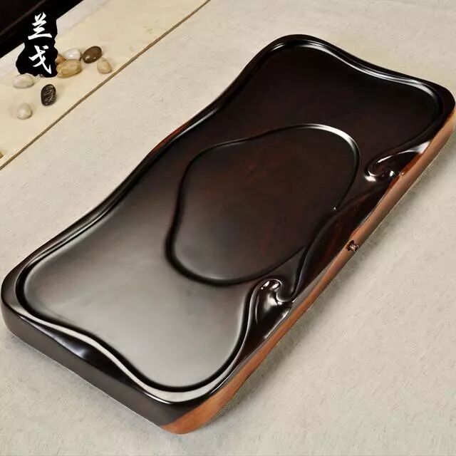 百年黑檀原木,结构细密、耐磨耐腐尊贵典范,成就高端茶盘,无色无味的漆面,手感柔滑,保色性强,茶盘外形简洁灵动给人流畅的感觉,大气上档次,低调奢华有品位