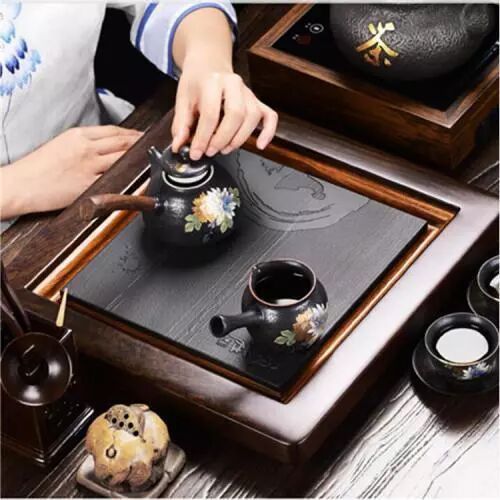 茶盘的材质多种多样,像乌金石茶盘,久经茶水的滋养会显得更加温润可观,婉如一件艺术品。还有黑檀木茶盘,木材有光泽,没特殊气味,耐久性强,很适合用来做珍贵家居。