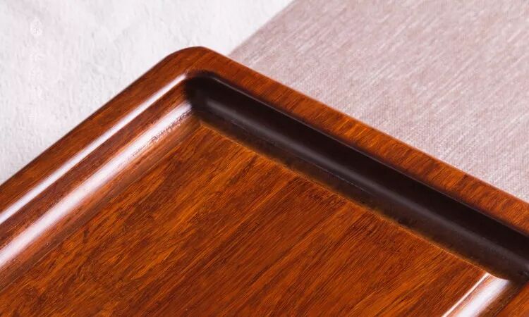 精心挑选五年以上竹龄的优质毛竹做材料,经过蒸煮、烘干、热压等一系列复杂繁琐的工艺流程,做出的重竹茶盘,不易开裂。