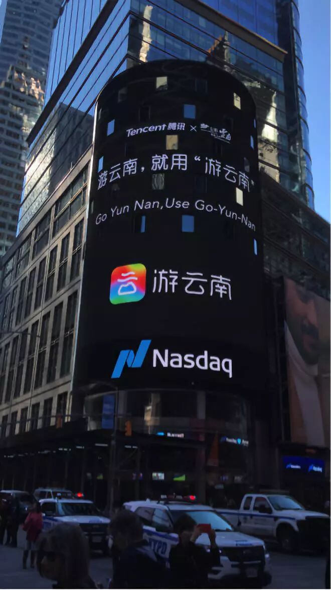 (“游云南“APP全球霸气发布:9月29日“游云南“APP登陆时代广场纳斯达克大屏,同日中国北京西单老佛爷商城大屏以及上海外滩震旦大屏共同亮相,以此举向全球宣布正式上线。)