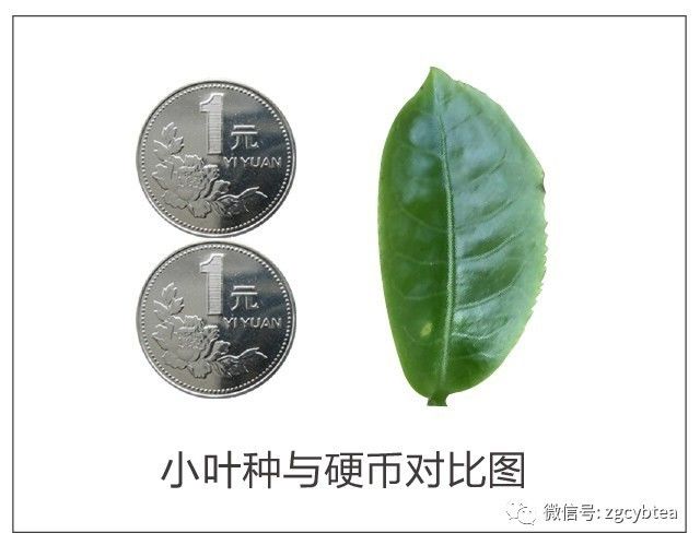 小叶种:又称“小叶茶”,成熟叶叶面积小于或等于14平方厘米——大概就是,最大不超过2个1元硬币排排站!
