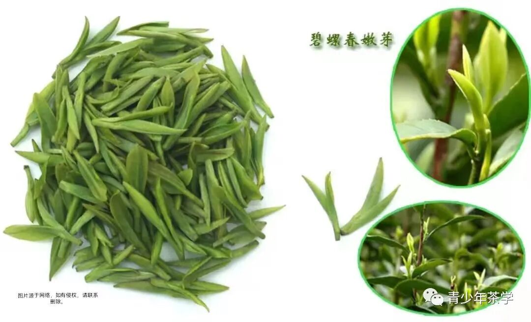高级的碧螺春,茶芽之细嫩0.5公斤干茶需要茶芽6-7万个。炒成后的干茶条索紧结,白毫显露,色泽银绿,翠碧诱人,卷曲成螺,产于春季,故名“碧螺春”。此茶冲泡后杯中白云翻滚,清香袭入,是中国的名茶。