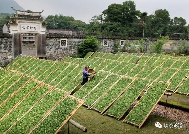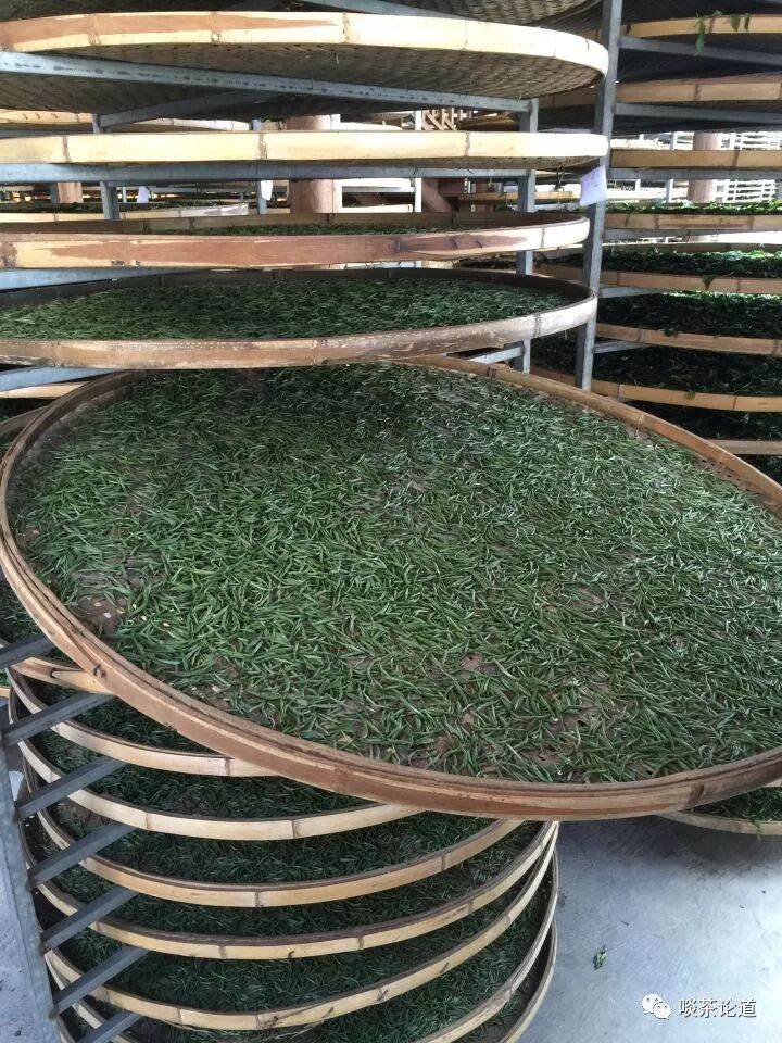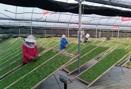 福鼎:萎凋主要靠的是日光萎凋,说白了就是一个字,晒!如果有机会到福鼎的点头镇去,就能看到茶厂里的日光萎凋房,茶叶会在萎凋架上享受“日光浴”。这种萎凋方法,萎凋时间的长短跟天气有很大关系,有太阳的情况下,需要萎凋十多个小时,如果日光很强烈,还要在顶棚上的加黑色网纱,如果阴天,萎凋时间就要相应延长。