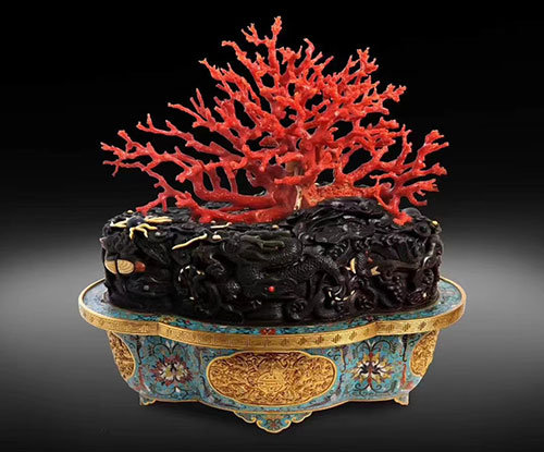 薄氏珍宝馆镇馆之宝(清代)珐琅紫檀招财红珊瑚树