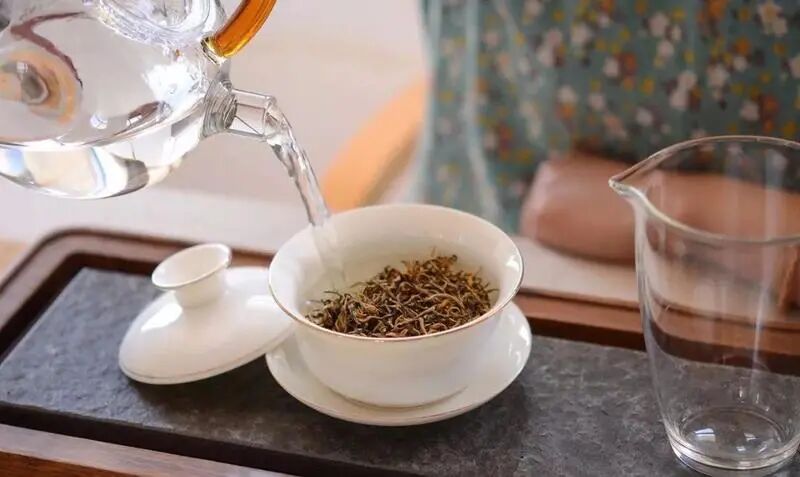 4、洗茶滇红茶正常情况下是不用洗茶的,前提是购买的茶叶质量与工艺过得去,且品质较高,那么洗茶就完全没必要,其他茶叶则可以适度选择性洗茶,当然即使洗茶,速度也要快,注水后立马出汤。5、冲泡冲泡滇红的水温为90~95℃左右即可(开水稍微晾置一下的温度)冲泡时若是水温过低,香气则无法更好的释放,所以一般90℃左右较为适宜。提起水壶,沿着盖碗壁环绕注水,让茶叶与水充分接触,注满水后,盖上盖子。随着泡数的增加,可适当增加坐杯时间5s、10s。