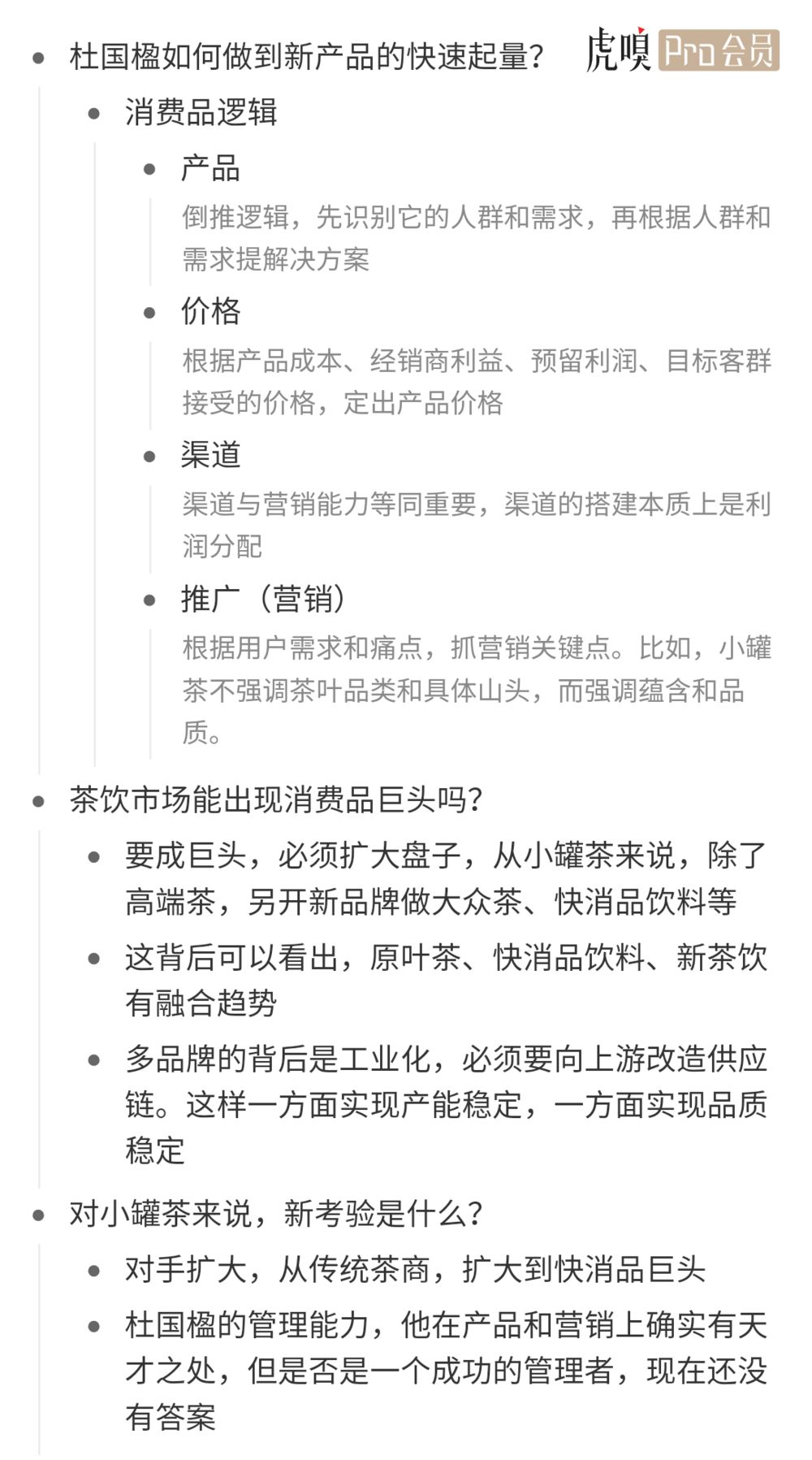 前一个问题对于消费品领域的创业者/从业者有学习和借鉴意义,后一个问题大致可以看出茶行业(包括原叶茶、茶饮料、新茶饮)发展融合趋势。