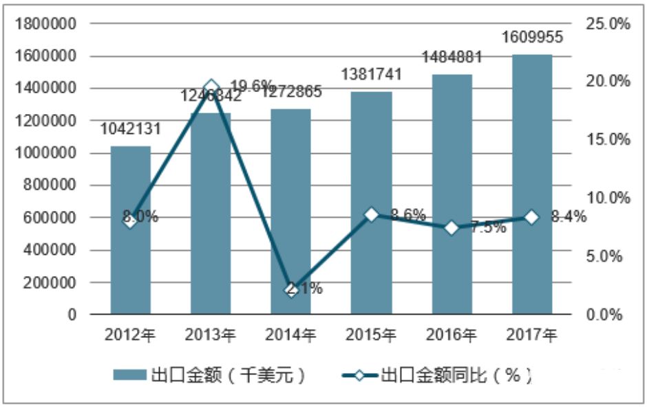 2017年当年出口金额是160995.5万美元。平均4533美元/吨,2.26美元/斤,按照2017年的汇率来算(6.8)差不多15.1元/斤。