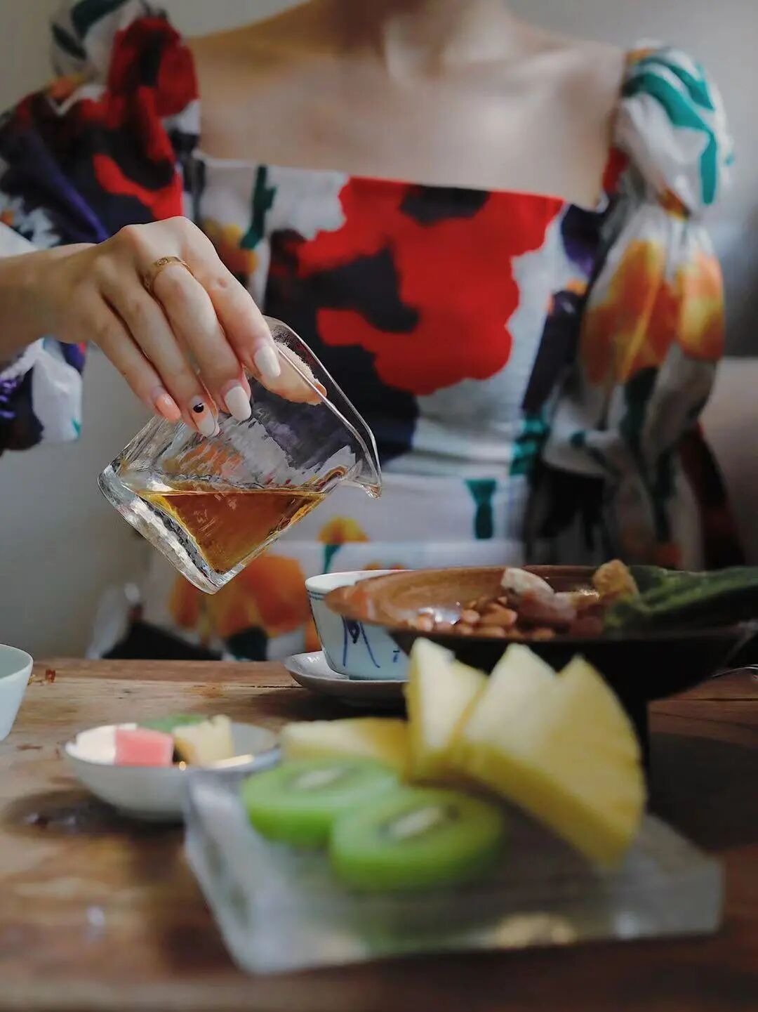 新鲜的茶喝起来也是十分上头的,甘甜味在口腔中萦绕,回味无穷~还伴有小食,精致的摆盘和整个空间融为一体。