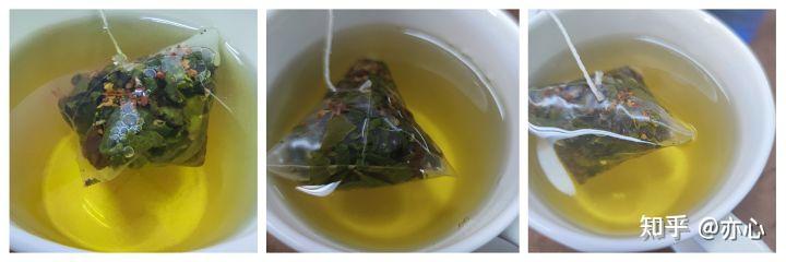 茶品,才颠覆了我的认知。 以这款知乎出品的白桃乌龙为例,简洁的外包装,免去了浮华无用的奢侈,将成本节约,用在产品本身的品质上。 包装为12个单独的茶包,主要成分为白桃果干和安溪铁观音原叶乌龙茶,背面有详细的冲泡方法。 茶包是纤维材质,看上去略显粗糙简洁。 可以清晰看到内含物里有茶叶和果干。 初泡入水,白桃芬芳飘散,压制了铁观音的香气。这点一开始让我有些担心,唯恐入口后口感过于甜腻,完全夺去了铁观音的清爽,那就失去了作为茶饮产品的本质。 好在我的担心是多余的。入口之后我发现,白桃果干的味道清甜,更加凸显了铁观音鲜爽、淡雅滋味。而在果味的掩护下,全无茶叶的苦涩感,细腻饱满口感,茶叶的鲜爽和果味的清甜相得益彰。 我一共泡了6泡,唯一的遗憾就是,口感上没有明显的层次感。 我拆解了冲泡完的茶包,里面确实由果肉干(配料里写着苹果丁和白桃丁两种)和茶叶组成。茶叶展开后条索相对完整,符合铁观音的茶形。 年初的时候知乎还推出了桂花乌龙茶。我有幸在产品上市之初就获得品尝机会。 在此之前,袋泡茶自己买来喝的不多,大部分都是商务会议场合,主办方提供的。自己买的好像只有立顿的袋泡茶系列。和常规茶叶比起来,我总觉得袋泡茶有两个缺点,第一,不耐泡;第二,缺少随时间推移形成的茶水口感层次变化。 知乎出品的桂花乌龙,主要选用福建安溪清香型铁观音,搭配优选桂花。 产品外包装同样简约,就是一个透明软塑料壳。 每个独立包装内含3克茶叶。 茶叶包选用材质是纤维,略显粗糙。 由左至右分别是前三泡。 初泡入水,桂花芬芳飘散,稍稍压制了铁观音的香气。 入口之后发现,桂花味道并不明显,尝下来尽是铁观音鲜爽、淡雅的滋味,细腻饱满,没有明显的涩感,或者可能是不佳的口感正好被桂花的柔滑弥补了。 我一共泡了6泡,唯一的遗憾就是,口感没有层次感,而且从第三泡开始,香气就已经很淡了。 再看看价格,这性价比,绝对超值! 这也是这两年非常流行的一个茶品,偶然被奶茶店带火了。 尤其是鸭屎香,绝对火爆大江南北的奶茶店和水吧。 偶然有机会品尝到了这款茶品。 经过茶商介绍,和搜集资料,我了解凤凰单枞的冲泡很有讲究,很符合潮汕人先苦后甜,细品人生的生活态度。 我担心自己冲泡方式不对,难以品味到凤凰单枞真实韵味,不过完成测评后,我发现自己应该是多虑了。 首先来看干茶。叶片条索清晰完整,较为宽大,颜色青绿黄混搭。 我尽量按照1:20的投茶量冲泡,前五泡每泡3-5秒出汤。第一口下肚,我有些惋惜。明显的煞口感充斥着口腔! 可是从第二泡开始,煞口感全无!我才意识到,自己应该是忽略了洗茶。 2-4泡入口后唇齿甘香,没有过于明显的涩感,很柔和,但喝过后细品有轻微的锁喉感。 五泡过后,出去吃饭,饭后依然能感觉到口腔内很淡的清甜感觉,生津明显。 下午茶底已凉,依然坚持泡了四五泡,出汤时间比较长,也没有增加涩感,反倒让回甘更加显著了。虽然到最后茶香几乎已经没有了,但居然没有透出一丝水味。茶韵相当不错。 鸭屎香属于凤凰单枞的一种香型。而柠檬鸭屎香(鸭屎香柠檬茶