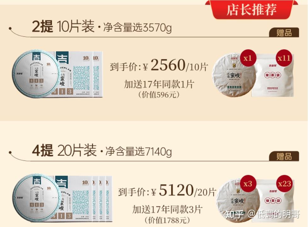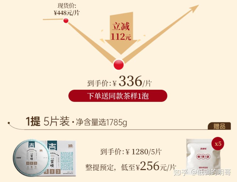本次春茶活动如下,不码字了,官网截图,还是非常值得的,单片价格底价不说,还有不错的赠品,成提购买单片可低至256元每片,并且还会赠送17年陈茶同款的茶饼,喜爱的朋友送礼自己收藏囤货皆可: