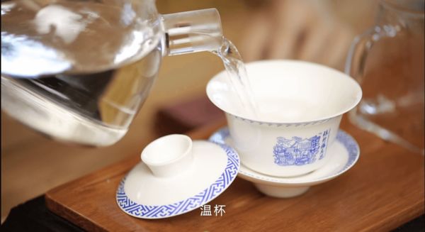 冲泡普洱茶前,先将沸水注入盖碗,此举一是有利于有清洁茶具,二是能提高茶具之温度,令普洱茶可完全发挥茶叶之色、香、味。