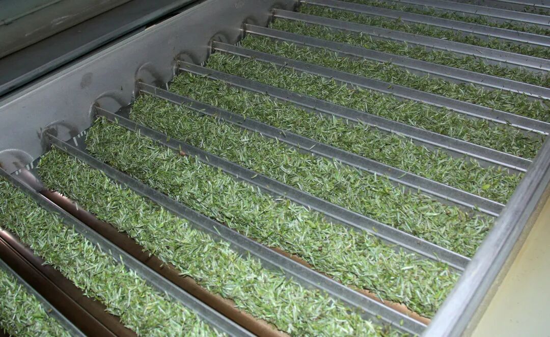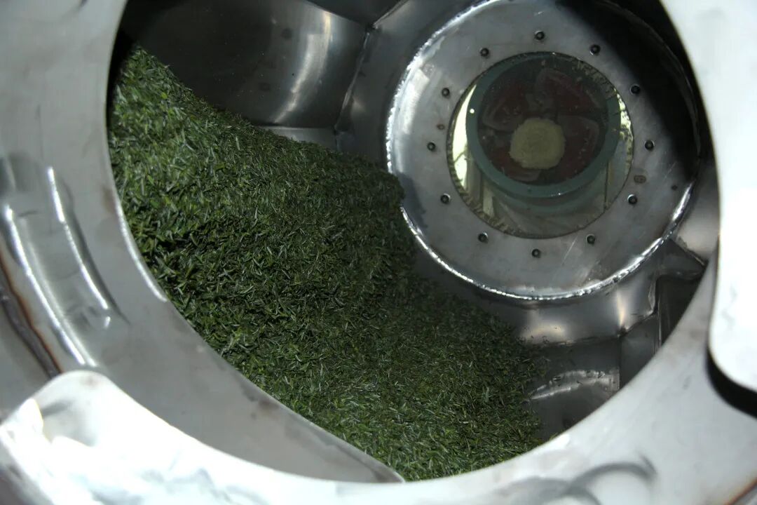 通过高温将变软的茶叶进一步减少水分,抑制鲜叶中茶多酚等的酶促氧化,固化茶色,促进茶香的形成。