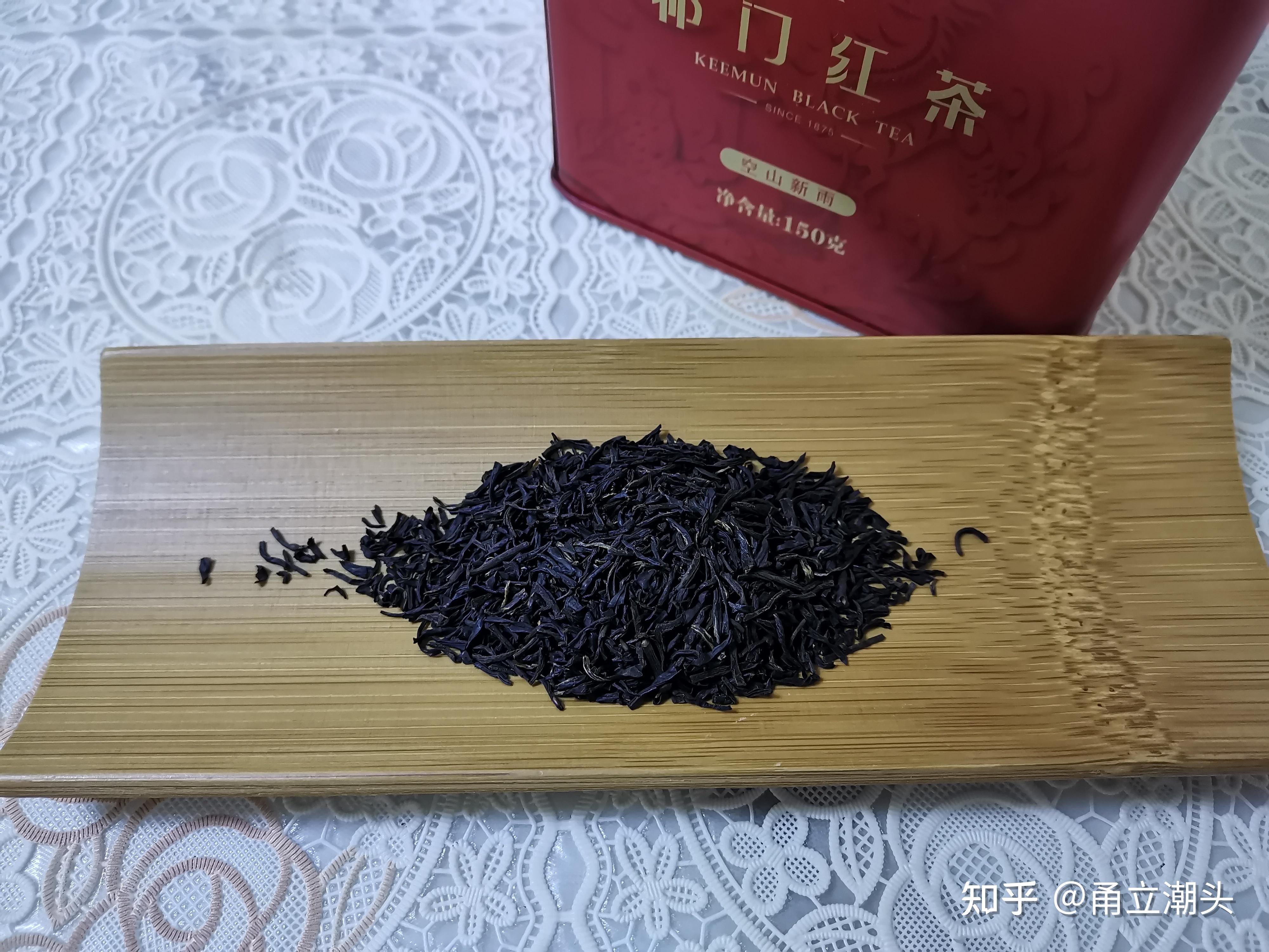 祁门红茶看起来较为短碎,刚开始还以为这茶叶品质不高,直到看到盒子底部有张卡片介绍,说祁红的最初为了出口欧美,迎合他们的饮茶习惯,特意通过特殊工艺才做成这样的。