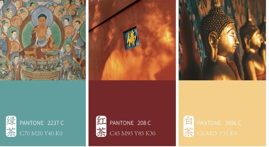 在产品色彩选择上,我们围绕惠明茶的文化特色—禅茶文化进行了选择。佛教有五色,象征绵泽永远。