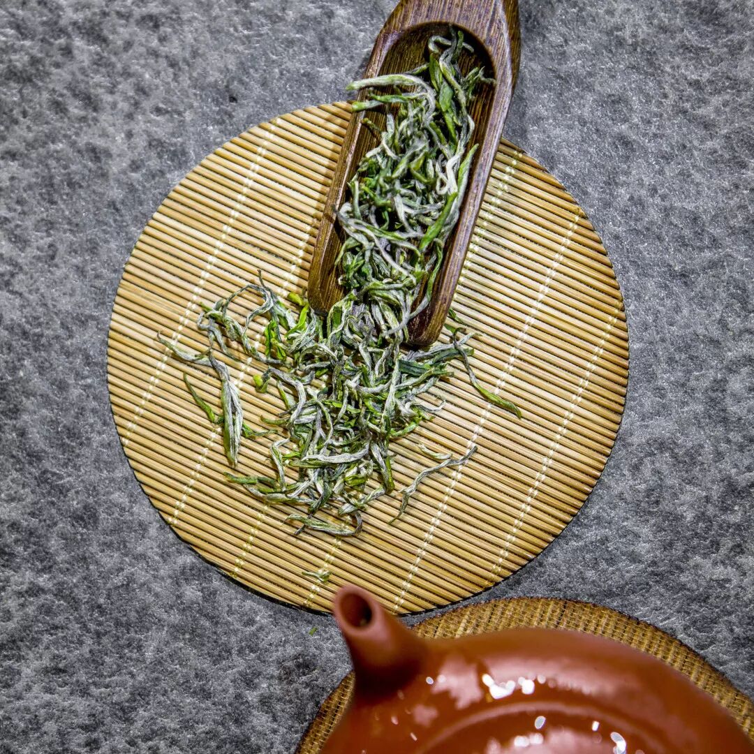 经通风摊放、高温杀青、理条整形、精细揉捻,最后经炭火烘干制作而成。外形细嫩显毫,色泽绿翠;内质嫩香持久,滋味鲜爽;汤色嫩绿明亮,叶底细嫩成朵,品尝起来带有丝丝的甘甜、淡淡的清香。