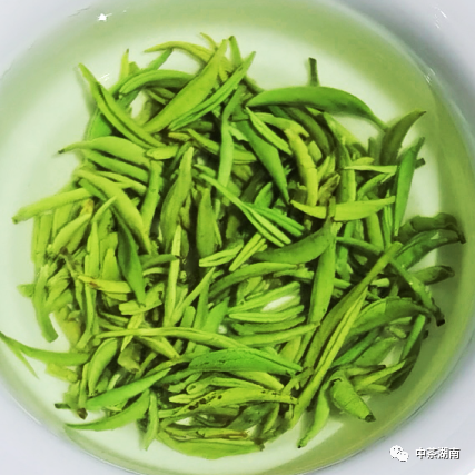 观茶:狗牯脑茶外形秀丽纤细,在泡饮之前,可进行观茶。观茶时,先取适量干茶,置于茶荷中,让品饮者先欣赏干茶的色、形,再闻一下香,充分领略狗牯脑茶的天然风韵。
